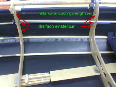 Spant 3/5 hatte einige Wochen lang eine "Versuchsphase", weil noch keine schlüssige Idee aufkam, wie am einfachsten die Sitze zu befestigen sind. Dazu bedarf es abwinkelbarer Stangen, welche so einfach nicht beschaffbar waren. |